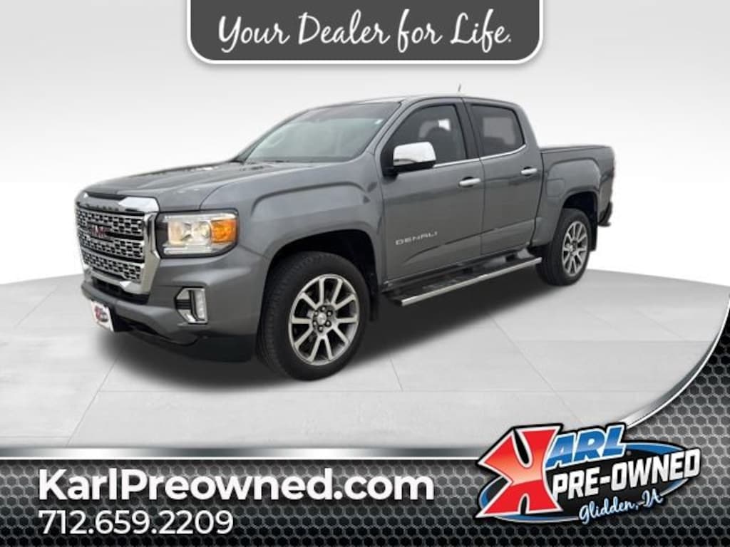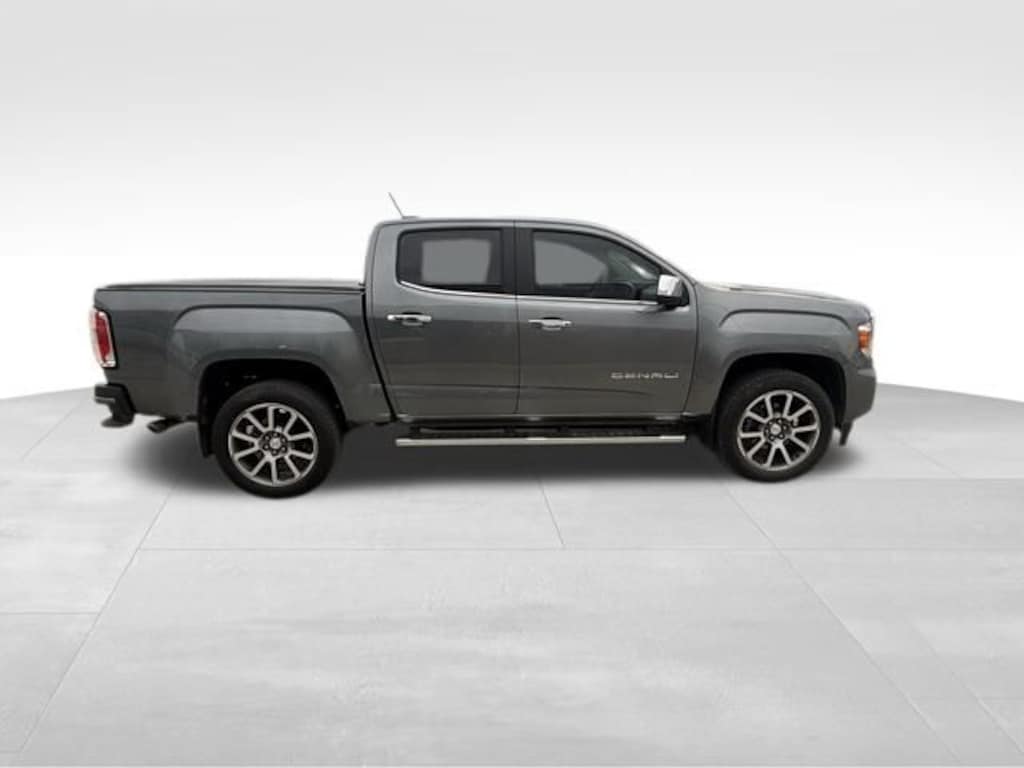 This 2022 GMC Canyon Denali Crew Cab 4WD delivers premium refinement paired with proven midsize truck capability. Finished in Satin Steel Metallic with a Cocoa/Dark Atmosphere leather-appointed interior, this Canyon Denali is powered by a 3.6L V6 engine with direct injection and variable valve timing, paired with a smooth 8-speed automatic transmission. Four-wheel drive with a two-speed Autotrac transfer case and an automatic locking rear differential provide confident traction in all driving conditions, while the factory trailering equipment package makes it well-suited for towing and weekend adventures. Inside, the Denali trim elevates comfort with heated and ventilated front seats, heated steering wheel, dual-zone automatic climate control, power-adjustable front seats with lumbar support, and premium soft-touch materials accented with aluminum trim. Technology highlights include an 8-inch GMC Infotainment System with navigation capability, wireless Apple CarPlay and Android Auto, Bose premium audio, remote start, wireless device charging, and an HD rear vision camera. Safety features such as rear park assist, driver alert package, stability control, and Teen Driver add peace of mind. With its upscale interior, advanced technology, and capable 4WD performance, this Canyon Denali offers luxury-level comfort in a versatile midsize pickup.