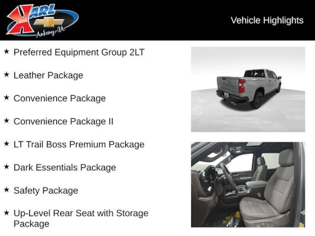 Elevate your driving experience with the all-new 2026 Chevrolet Silverado 1500 LT Trail Boss. Engineered to conquer any terrain, this rugged and versatile pickup is the perfect companion for your adventures. Boasting a powerful EcoTec3 6.2L V8 engine, the Silverado 1500 LT Trail Boss delivers an impressive 420 horsepower and 460 lb-ft of torque, ensuring you have the power to tackle any challenge.