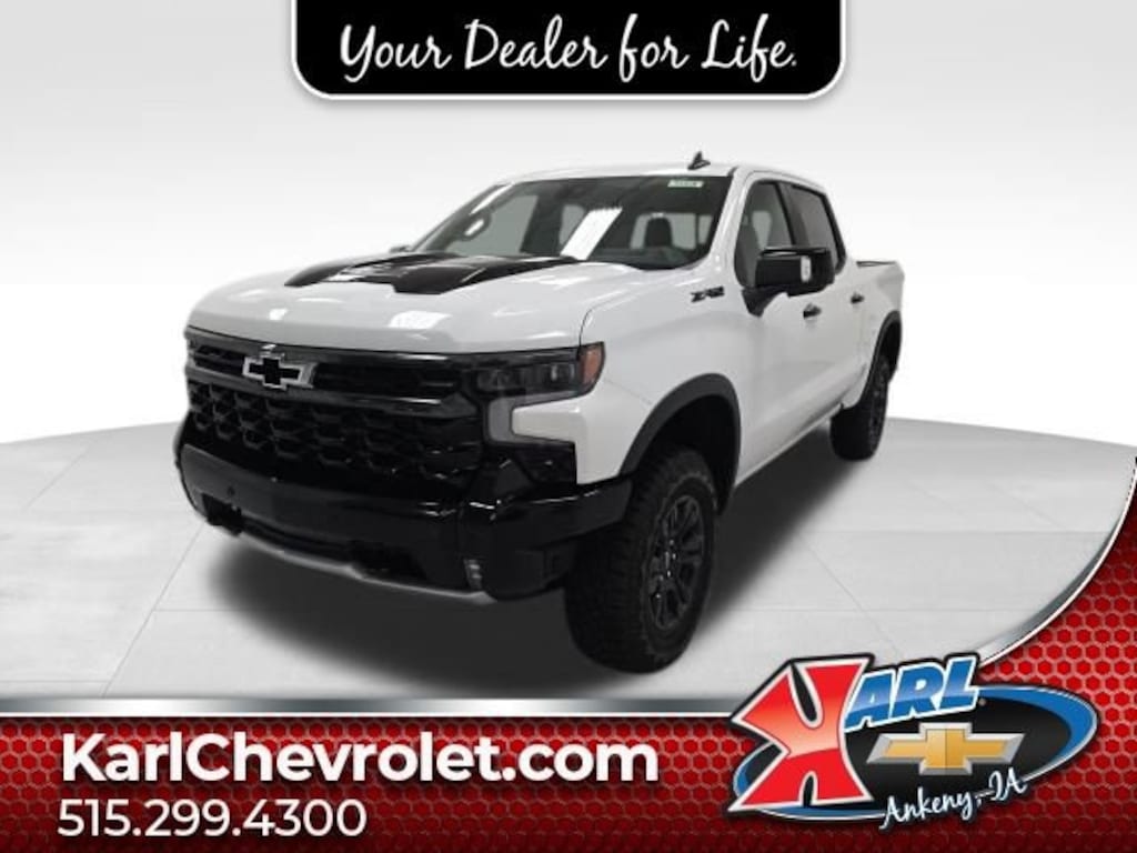 Factory MSRP: $75,490 $5,744 off MSRP! 10-Speed Automatic, 4WD, Jet Black/Graystone Leather, 10-Way Power Driver Seat w/Lumbar, 10-Way Power Passenger Seat Adjuster w/Lumbar, 12.3 Multicolor Reconfigurable Digital Display, 120-Volt Bed Mounted Power Outlet, 120-Volt Interior Power Outlet, 15 Diagonal Multicolor Head-Up Display, 2 USB Data Ports, 2nd Row Heated Outboard Seats, Adaptive Cruise Control, All-Weather Floor Liner (LPO), Bed View Camera, Bluetooth® For Phone, Chevytec Spray-On Black Bedliner, Color-Keyed Carpeting Floor Covering, Dark Appearance Package, Deep-Tinted Glass, Driver Memory, Dual Rear USB Ports (Charge Only), Electric Rear-Window Defogger, EZ Lift Power Lock & Release Tailgate, Floor Mounted Center Console, Front Bucket Seats, Front Center Armrest, Front Frame-Mounted Black Recovery Hooks, Front LED Fog Lamps, Front Rain-Sensing Wipers, HD Surround Vision, Heated Driver & Front Outboard Passenger Seats, Heated rear seats, Heated Steering Wheel, Heavy-Duty Air Filter, High Gloss Black Mirror Caps, Hill Descent Control, Hitch Guidance, Hitch Guidance w/Hitch View, In-Vehicle Trailering System App, Integrated Trailer Brake Controller, Keyless Open & Start, LED Cargo Area Lighting, Multi-Flex Tailgate, OnStar Services Capable, Outside Heated Power-Adjustable Mirrors, Perforated Leather Seat Trim, Performance Red Recovery Hooks, Perimeter Lighting, Power Front Passenger Windows w/Express Up/Down, Power Front Windows w/Driver Express Up/Down, Power passenger seat, Power Rear Windows w/Express Down, Power Sliding Rear Window w/Rear Defogger, Power Sunroof, Power Tilt & Telescoping Steering Column, Preferred Equipment Group 3LT, Premium audio system: Chevrolet Infotainment 3 Premium, Premium Bose 7-Speaker Sound System, Radio: Chevrolet Infotainment 3 Premium System, Rear Camera Mirror, Rear Cross Traffic Braking, Rear Pedestrian Alert, Rear Wheelhouse Liners, Remote Vehicle Starter System, Safety Alert Seat, SiriusXM w/360L Trial Subscription, Split folding rear seat, Steering Wheel Audio Controls, Technology Package, Teen Driver, Theft Deterrent System (Unauthorized Entry), Tire Pressure Monitoring System, Trailer Camera Provisions, Trailer Side Blind Zone Alert, Trailering Package, Ultrasonic Front & Rear Park Assist, Universal Home Remote, Up-Level Rear Seat w/Storage Package, Ventilated Driver & Front Passenger Seats, Wheels: 18 x 8.5 Gloss Black, Wi-Fi Hot Spot Capable, Wrapped Steering Wheel, ZR2 Suspension Package.Summit White 2026 Chevrolet Silverado 1500 ZR2 4D Crew Cab 3.0L I6 10-Speed Automatic 4WD Price includes: $1000 - GM Bonus Cash. Exp. 11/03/2025 $1500 - Chevrolet Consumer Cash Program. Exp. 11/03/2025