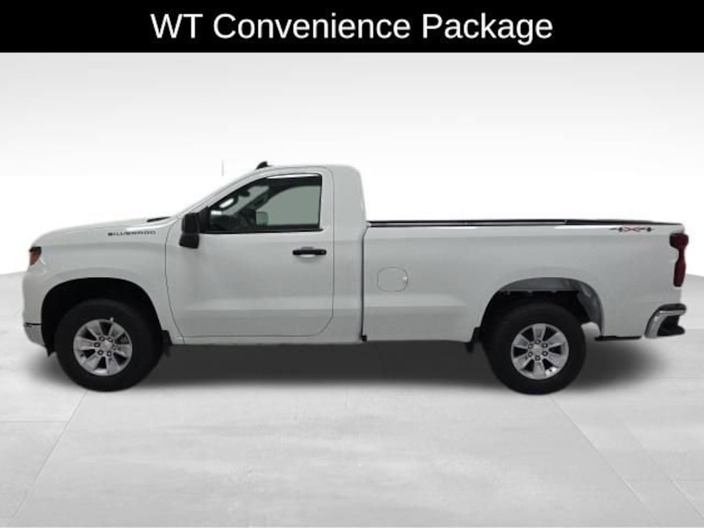 Factory MSRP: $48,200 $4,294 off MSRP! 10-Speed Automatic, 4WD, Jet Black Vinyl, 120-Volt Bed Mounted Power Outlet, 120-Volt Interior Power Outlet, 2-Speaker Audio System, 3.5 Monochromatic Display Driver Info Center, 40/20/40 Front Split Bench Seat, Air Conditioning, Black (Semi-Gloss) Front Bumper, Black (Semi-Gloss) Rear Bumper, Brake assist, Compass, Deep-Tinted Glass, Dual front side impact airbags, Electric Rear-Window Defogger, Electronic Stability Control, Emergency communication system: OnStar, EZ Lift Power Lock & Release Tailgate, Following Distance Indicator, Forward Collision Alert, Front Center Armrest w/Storage, Front Chrome Bumper, Front Pedestrian Braking, HD Rear Vision Camera, Heated door mirrors, Hitch Guidance, Inside Rear-View Mirror w/Tilt, Integrated Trailer Brake Controller, IntelliBeam Automatic High Beam On/Off, Lane Keep Assist w/Lane Departure Warning, Locking Tailgate, Low tire pressure warning, Manual Tailgate Function w/No EZ Lift, Occupant sensing airbag, OnStar Services Capable, Overhead console, Passenger door bin, Power Front Windows w/Driver Express Up/Down, Premium audio system: Chevrolet Infotainment 3, Radio data system, Radio: Chevrolet Infotainment 3 System, Rear step bumper, Remote Keyless Entry, Remote keyless entry, Rubberized-Vinyl Floor Covering, Solar Absorbing Tinted Glass, Standard Suspension Package, Standard Tailgate, Tilt steering wheel, Trailering Package, Vinyl Seat Trim, Wheels: 17 x 8 Bright Silver Painted Aluminum, Wheels: 17 x 8 Ultra Silver Painted Steel, Wi-Fi Hot Spot Capable, WT Convenience Package, WT Value Package.Summit White 2026 Chevrolet Silverado 1500 WT 2D Standard Cab EcoTec3 5.3L V8 10-Speed Automatic 4WD Price includes: $1000 - GM Bonus Cash. Exp. 11/03/2025 $2000 - Chevrolet Consumer Cash Program. Exp. 11/03/2025