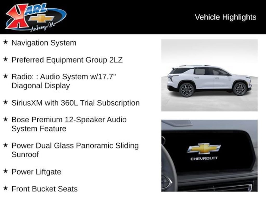 - Includes 3 years of OnStar One with Super Cruise upgrade2