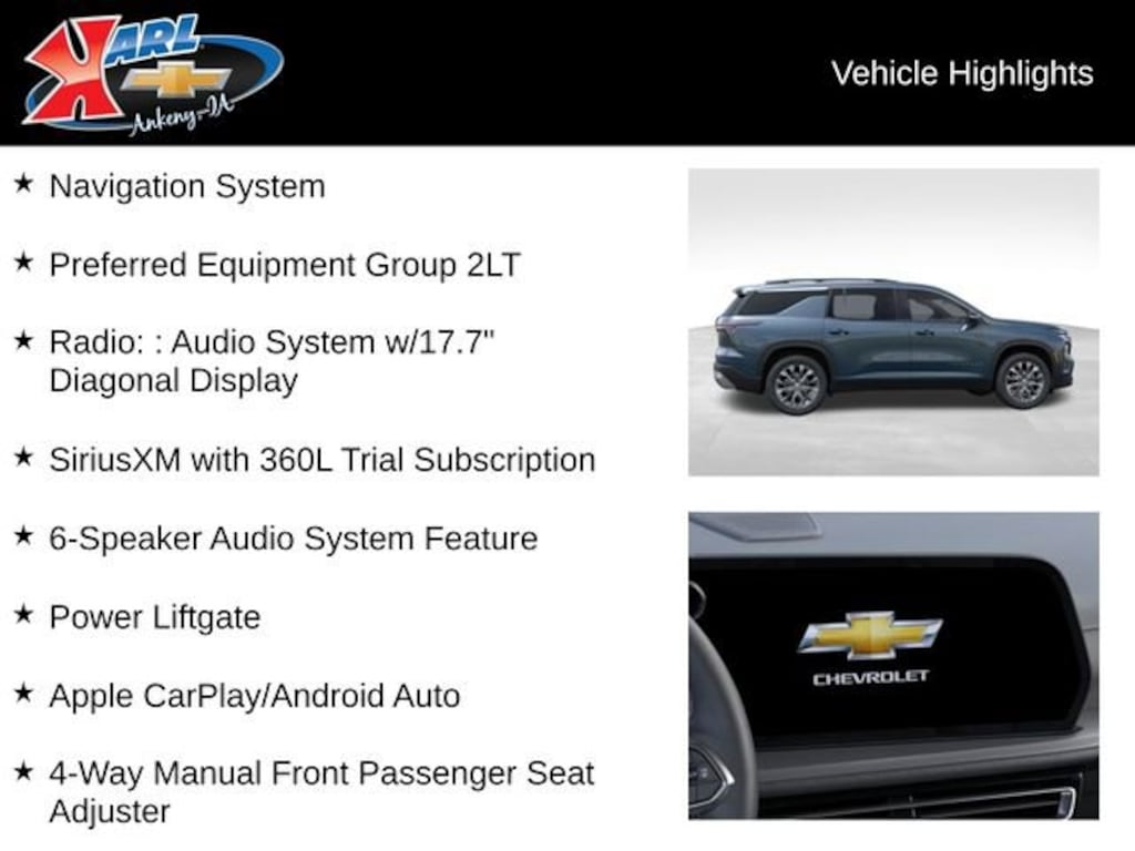 Experience the confidence and comfort of the 2026 Chevrolet Traverse LT for yourself. Schedule a test drive today and discover how this exceptional SUV can enhance your driving experience. Price includes $404 dealer added accessories.