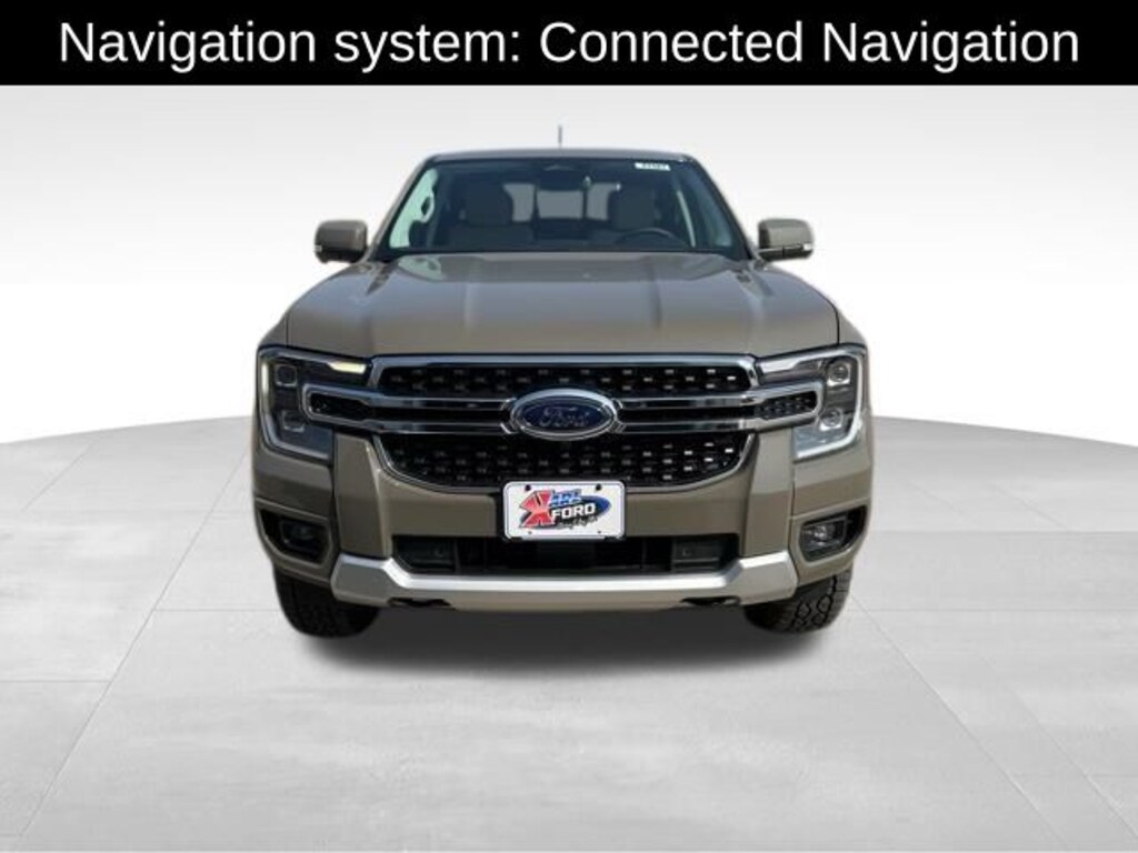 This 2025 Ford Ranger comes equipped with, Ranger Lariat, 4D Crew Cab, EcoBoost 2.3L I4 GTDi DOHC Turbocharged VCT, 10-Speed Automatic, 4WD, Gray, Sandstone Lth-Trmmed Fron Leather, 10 Speakers, 3.73 Axle Ratio, 4-Wheel Disc Brakes, ABS brakes, Air Conditioning, Alloy wheels, AM/FM radio: SiriusXM, Auto High-beam Headlights, Auto-dimming Rear-View mirror, Automatic temperature control, Brake assist, Compass, Delay-off headlights, Driver door bin, Driver vanity mirror, Dual front impact airbags, Dual front side impact airbags, Electronic Stability Control, Emergency communication system: SYNC 4 911 Assist, Front anti-roll bar, Front Bucket Seats, Front Center Armrest, Front dual zone A/C, Front fog lights, Front reading lights, Front wheel independent suspension, Fully automatic headlights, Garage door transmitter, Gray Painted Center Bar & Grille Surround, Gray Painted Front Fascia & Rear Bumper, Heated door mirrors, Heated front seats, Heated steering wheel, Illuminated entry, Leather Shift Knob, Leather steering wheel, Leather-Trimmed Front Heated Bucket Seats, Low tire pressure warning, Memory seat, Navigation system: Connected Navigation, Occupant sensing airbag, Outside temperature display, Overhead airbag, Overhead console, Panic alarm, Passenger door bin, Passenger vanity mirror, Power door mirrors, Power driver seat, Power passenger seat, Power steering, Power windows, Radio: B&O Sound System by Bang & Olufsen, Rain sensing wipers, Rear reading lights, Rear seat center armrest, Rear step bumper, Rear window defroster, Remote keyless entry, Security system, SiriusXM Satellite Radio, Speed control, Speed-sensing steering, Sport Appearance Package, Sport Box Decal, Steering wheel mounted audio controls, SYNC 4A w/Connected Navigation, Telescoping steering wheel, Tilt steering wheel, Traction control, Trip computer, Turn signal indicator mirrors, Variably intermittent wipers, Voltmeter, Wheels: 18" Machined Aluminum w/Dark Pockets.