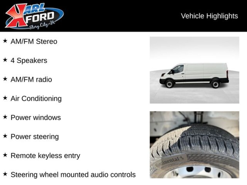 Your Dealer for Life, Karl Ford of Story City. When you buy a new car at Karl Ford of Story City you know you're finding a vehicle you can rely on. We have a great selection of new vehicles for you to test drive around Ames and Des Moines, IA. We also pride ourselves in creating a friendly atmosphere and reliable new car dealership that you can trust. Call us with any questions about our 2025 Ford Transit-250 and our experts will be glad to help you! (515) 733-4364. *Equipment and options are generated by a 3rd party vendor, exact vehicle options may vary. Please see a salesperson for complete details and vehicle information. Price includes: $3000 - Retail Customer Cash. Exp. 01/05/2026