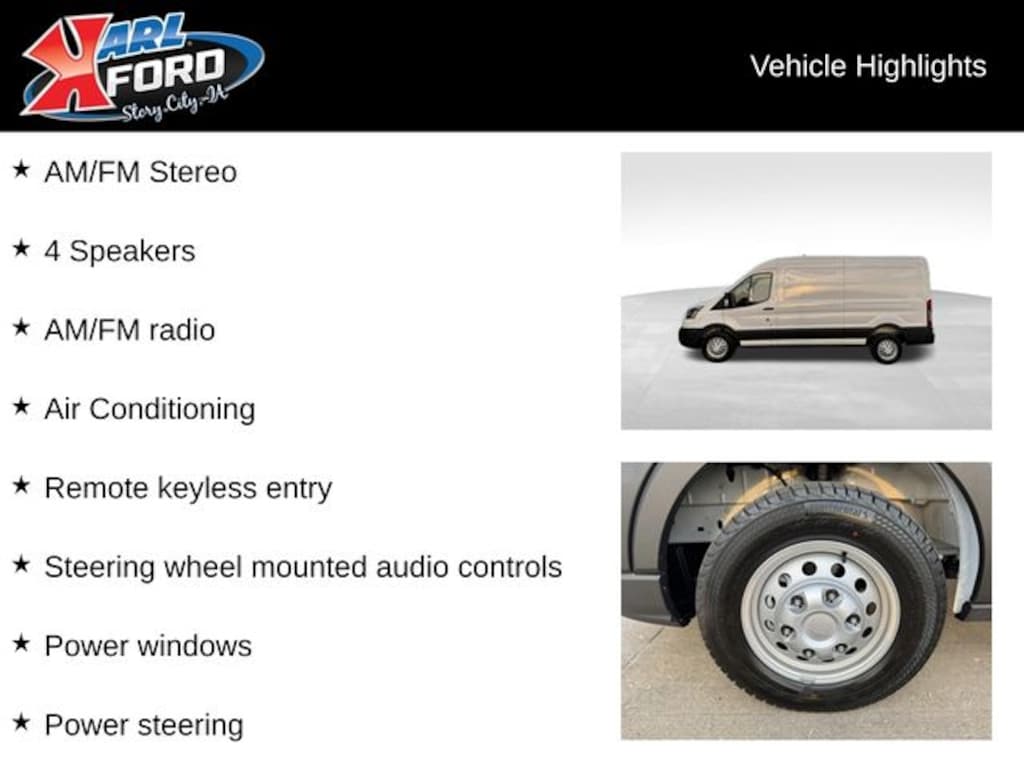 Your Dealer for Life, Karl Ford of Story City. When you buy a new car at Karl Ford of Story City you know you're finding a vehicle you can rely on. We have a great selection of new vehicles for you to test drive around Ames and Des Moines, IA. We also pride ourselves in creating a friendly atmosphere and reliable new car dealership that you can trust. Call us with any questions about our 2025 Ford Transit-250 and our experts will be glad to help you! (515) 733-4364. *Equipment and options are generated by a 3rd party vendor, exact vehicle options may vary. Please see a salesperson for complete details and vehicle information.
