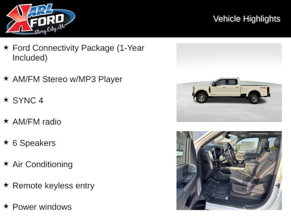 Your Dealer for Life, Karl Ford of Story City. When you buy a new car at Karl Ford of Story City you know you're finding a vehicle you can rely on. We have a great selection of new vehicles for you to test drive around Ames and Des Moines, IA. We also pride ourselves in creating a friendly atmosphere and reliable new car dealership that you can trust. Call us with any questions about our 2026 Ford F-350SD and our experts will be glad to help you! (515) 733-4364. *Equipment and options are generated by a 3rd party vendor, exact vehicle options may vary. Please see a salesperson for complete details and vehicle information.