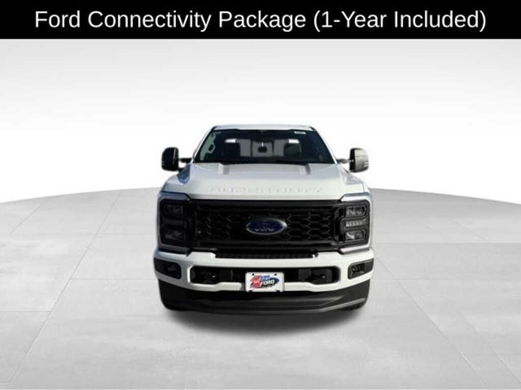 This 2026 Ford F-350SD comes equipped with, Super Cab, 7.3L V8 PFI SOHC 16V Federal 405hp, 10-Speed Automatic, 4WD, Oxford White, Med Dk Slate Clth 40/20/4 Cloth, 190 Amp Alternator, 3.73 Axle Ratio, 4-Wheel Disc Brakes, 6 Speakers, ABS brakes, Air Conditioning, AM/FM radio, AM/FM Stereo w/MP3 Player, Brake assist, Cloth 40/20/40 Split Bench Seat, Compass, Delay-off headlights, Dual front impact airbags, Dual front side impact airbags, Electronic Stability Control, Emergency communication system: SYNC 4 911 Assist, Exterior Parking Camera Rear, Ford Connectivity Package (1-Year Included), Front anti-roll bar, Front Center Armrest w/Storage, Front reading lights, Fully automatic headlights, Heated door mirrors, Illuminated entry, Low tire pressure warning, Outside temperature display, Overhead airbag, Overhead console, Panic alarm, Passenger cancellable airbag, Passenger vanity mirror, Power door mirrors, Power steering, Power windows, Privacy Glass, Rear step bumper, Remote keyless entry, Security system, Speed control, Split folding rear seat, Steering wheel mounted audio controls, SYNC 4, Tachometer, Telescoping steering wheel, Tilt steering wheel, Traction control, Trip computer, Turn signal indicator mirrors, Variably intermittent wipers.