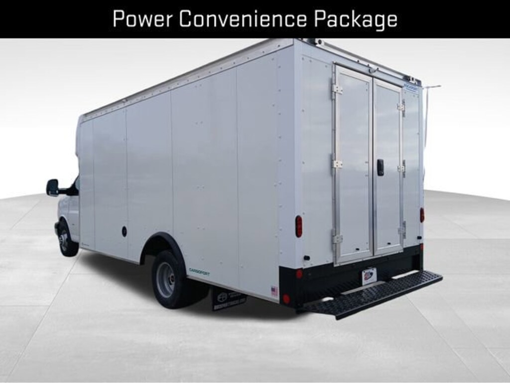 White 2025 GMC Cutaway Van Savana 3500 Work Van 6.6L V8 8-Speed Automatic RWD, upfit with a Rockport Box Van body ($20,670).