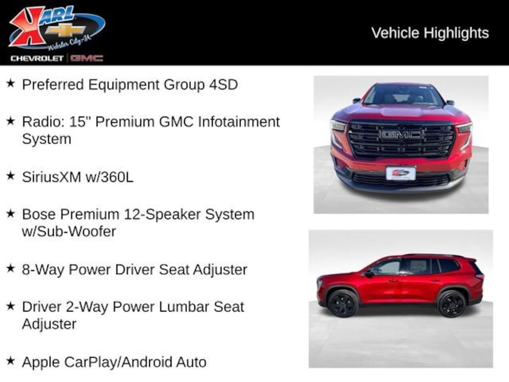 With its striking red exterior and well-appointed interior, the 2026 GMC Acadia Elevation is a true standout in its class. Whether you're navigating the city streets or embarking on a family adventure, this SUV is ready to exceed your expectations.