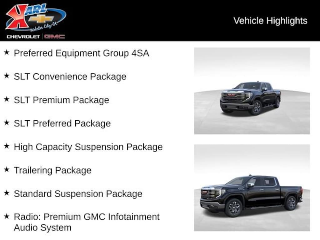 At Karl Chevrolet/GMC we want to help you find the best new or used car in Webster City that suits your needs. When you buy a new car at Karl Chevrolet/GMC you know you're finding a vehicle you can rely on. We have a great selection of CarBravo Quality Pre-Owned Vehicles. We also pride ourselves in creating a friendly atmosphere and a reliable Dealership that you can trust. Call us and our experts will be glad to help you! (515) 209-7117. *Equipment and options are generated by a 3rd party vendor, exact vehicle options may vary. Please see a salesperson for complete details and vehicle information. Price includes: $1750 - Buick & GMC Consumer Cash Program. Exp. 04/30/2026 $2500 - Buick GMC Bonus Cash. Exp. 04/30/2026