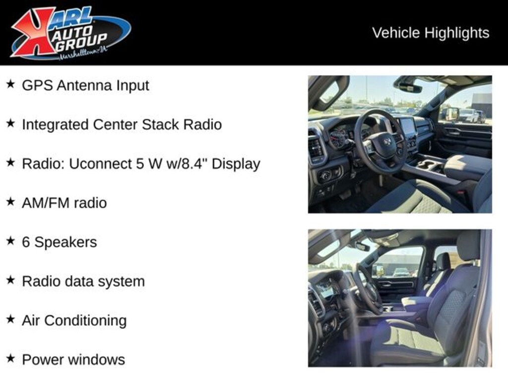 When you buy a new car at Karl or Marshalltown you know you're finding a vehicle you can rely on. We have a great selection of new vehicles for you to test drive around Newton and Des Moines, IA. We also pride ourselves in creating a friendly atmosphere and reliable new car dealership that you can trust. Call us with any questions about our 2026 Ram 1500 and our experts will be glad to help you! (641) 752-7101. *Equipment and options are generated by a 3rd party vendor, exact vehicle options may vary. Please see a salesperson for complete details and vehicle information. Price includes: $3500 - 2026 National Retail Consumer Cash . Exp. 11/03/2025