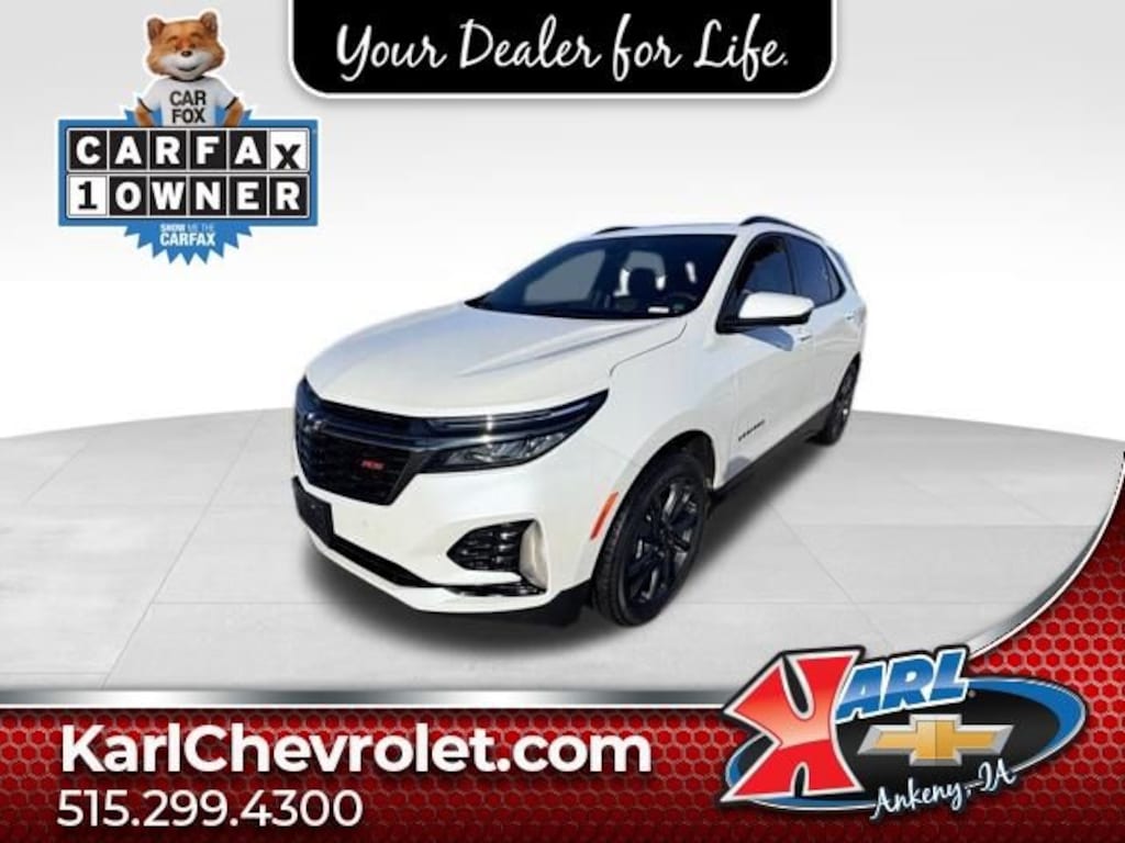 Certification Program Details: Karl Chevrolet of Ankeny, The Nation's #1 CarBravo Certified Dealer! Every CarBravo Certified vehicle includes: Comprehensive 126-Point Inspection Professionally inspected by factory-trained technicians to meet strict mechanical, safety, and cosmetic standards. 12-Month / 12,000-Mile Bumper-to-Bumper Limited Warranty Enjoy added peace of mind with extensive coverage from the day you drive off the lot. 24/7 Roadside Assistance & Courtesy Transportation Flat tire? Dead battery? Need a tow? You're covered anywhere, anytime throughout the warranty period. Vehicle History & Title Guarantee Clean title, completed safety recalls, and a full CARFAX® or AutoCheck® report provided for complete transparency. 10-Day / 500-Mile Exchange Promise If you don't absolutely love it, bring it back and exchange it no hassle, no stress. Experience peace of mind and premium protection exclusively from Karl Chevrolet of Ankeny, the Nation's #1 CarBravo Dealer!- RS Leather Package- Safety & Infotainment Package- Side Blind Zone & Rear Cross Traffic- Bose Premium 7-Speaker Audio System Feature- Wireless Apple CarPlay/Wireless Android Auto- Heated Driver & Front Passenger SeatsThis 2023 Chevrolet Equinox RS AWD 4DR RS is a remarkable SUV that combines style, performance, and advanced technology. With its sleek exterior design, the Equinox RS commands attention on the road, while its spacious and well-appointed interior offers a premium driving experience.Under the hood, the Equinox RS is powered by a 1.5L DOHC engine paired with a 6-Speed Automatic Electronic with Overdrive transmission, delivering a smooth and efficient ride. With an impressive 24 city/30 highway MPG, this SUV strikes the perfect balance between power and fuel efficiency.The Equinox RS is packed with a wealth of features that cater to your every need. Enjoy the convenience of a power sunroof, the comfort of heated front seats, and the connectivity of wireless Apple CarPlay and Android Auto. The Bose premium 7-speaker audio system provides an immersive listening experience, while the suite of advanced safety features, including Lane Change Alert with Side Blind Zone Alert and Rear Cross Traffic Alert, give you added peace of mind on the road.This Equinox RS is more than just a vehicle - it's a gateway to a lifestyle of adventure and convenience. Whether you're commuting to work, taking a road trip, or tackling your daily errands, this SUV is ready to handle it all with style and confidence.Certified as part of the Karl Chevrolet CarBravo Certified program, this Equinox RS has undergone a comprehensive 126-point inspection by our factory-trained technicians. You can drive with the assurance of a 12-month/12,000-mile bumper-to-bumper limited warranty, 24/7 roadside assistance, and the peace of mind that comes with a clean vehicle history and title.At Karl Chevrolet, we're dedicated to providing our customers with the highest level of service and satisfaction. Our team of experts is here to help you find the perfect vehicle to suit your needs and lifestyle. Call us today at (515) 299-4300 to schedule a test drive and experience the Equinox RS for yourself.At Karl Chevrolet we want to help you find the best new or used car in Ankeny that suits your needs. When you buy a new car at Karl Chevrolet you know you're finding a vehicle you can rely on. We have a great selection of Platinum Quality Pre-Owned Vehicles. We also pride ourselves in creating a friendly atmosphere and a reliable Dealership that you can trust. Call us and our experts will be glad to help you! (515) 299-4300. *Equipment and options are generated by a 3rd party vendor, exact vehicle options may vary. Please see a salesperson for complete details and vehicle information.