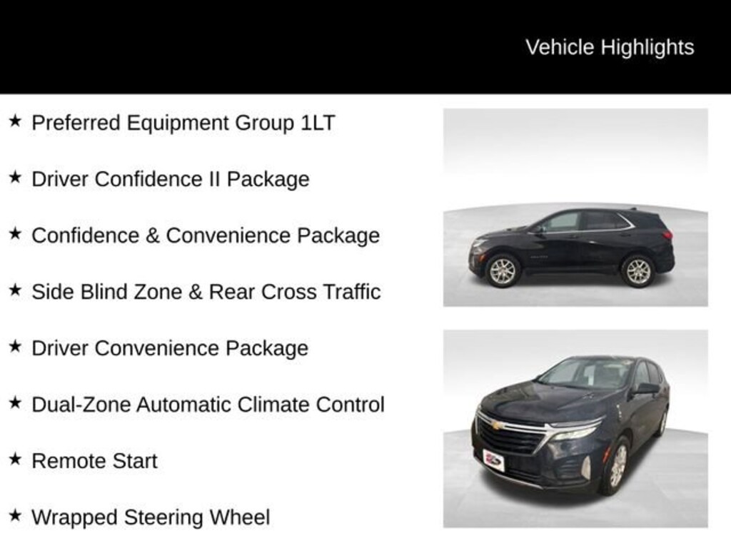 One of the standout features of this Equinox is the impressive fuel economy, with an EPA-estimated 26 city and 31 highway MPG. This means you'll spend less time at the pump and more time enjoying the open road. The Confidence & Convenience Package takes this SUV to the next level, adding advanced safety features like Side Blind Zone and Rear Cross Traffic Alert, as well as premium conveniences like Dual-Zone Automatic Climate Control and a Rear Power Liftgate.