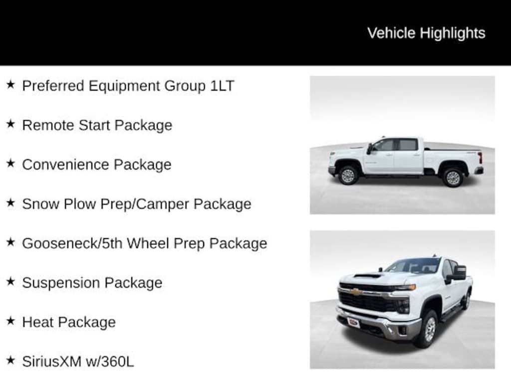 10-Way Power Driver Seat Adjuster w/Lumbar, 120-Volt Bed Mounted Power Outlet, 120-Volt Interior Power Outlet, 170 Amp Alternator, 2-Speed Electronic Shift Transfer Case, 220 Amp Alternator, 4-Way Manual Driver Seat Adjuster, Black Mirror Caps, Bluetooth® For Phone, Chevrolet Connected Access Capable, Color-Keyed Carpeting Floor Covering, Compass, Convenience Package, Deep-Tinted Glass, Dual Rear USB Ports (Charge Only), Dual-Zone Automatic Climate Control, Electric Rear-Window Defogger, Electronic Cruise Control w/Set & Resume Speed, EZ Lift Power Lock & Release Tailgate, Front LED Fog Lamps, Front Rubberized Vinyl Floor Mats, Gooseneck/5th Wheel Prep Package, Halogen Reflector Headlamps, HD Rear Vision Camera, Heat Package, Heated Driver & Front Outboard Passenger Seating, Heated Steering Wheel, Heated Vertical Trailering Mirrors, Keyless Open & Start, LED Cargo Area Lighting, Manual Tilt & Telescoping Steering Column, Manual Tilt-Wheel Steering Column, OnStar & Chevrolet Connected Services Capable, Power Door Locks, Power Front Windows w/Driver Express Up/Down, Power Front Windows w/Passenger Express Down, Power Rear Windows w/Express Down, Preferred Equipment Group 1LT, Push Button Start, Rear 60/40 Folding Bench Seat (Folds Up), Rear Rubberized Vinyl Floor Mats, Remote Start Package, Remote Vehicle Starter System, SiriusXM w/360L, Snow Plow Prep/Camper Package, Standard Tailgate, Steering Wheel Audio Controls, Suspension Package, Unauthorized Entry Theft-Deterrent System, Wi-Fi Hotspot Capable, Wireless Phone Projection, Wrapped Steering Wheel.