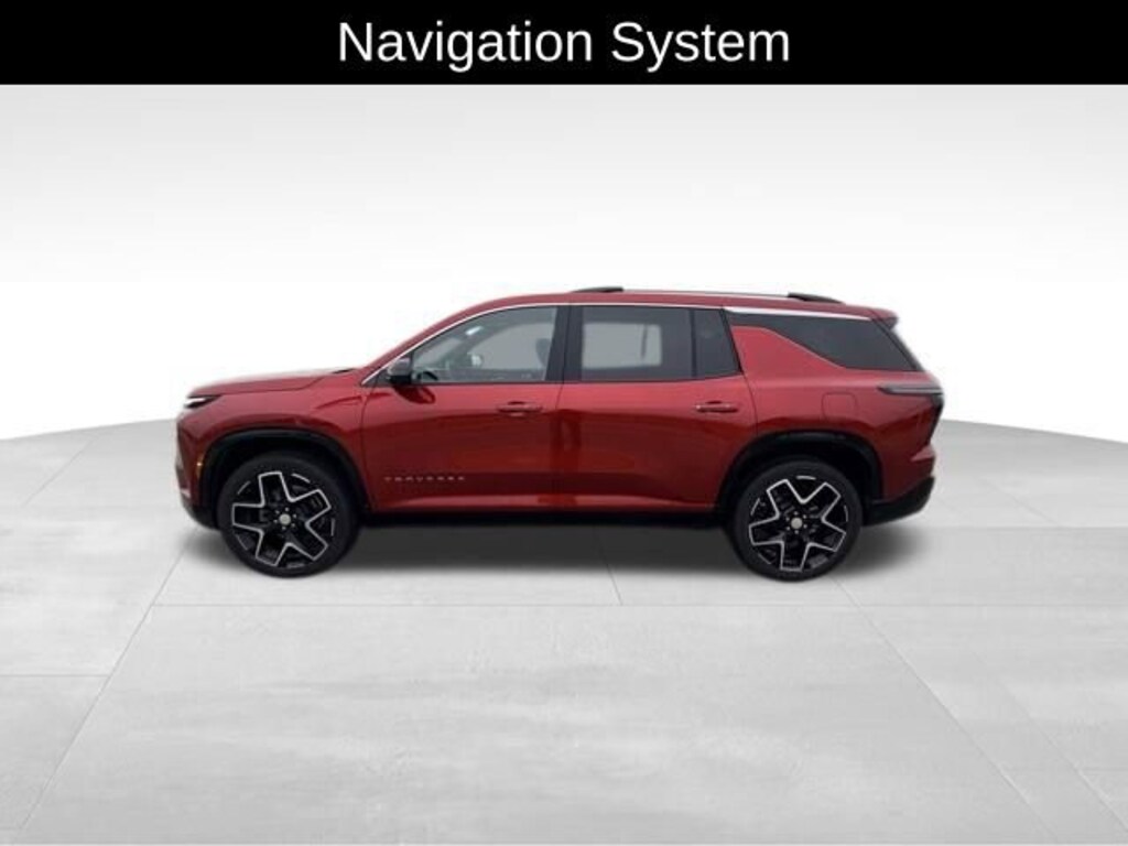 The exterior of this Traverse is adorned in a vibrant Radiant Red Tintcoat color, which perfectly complements the sleek and modern design. The vehicle's impressive list of features includes a panoramic sunroof, providing an open and airy cabin experience. The Bose premium audio system and navigation system ensure you'll enjoy every mile of your journey.