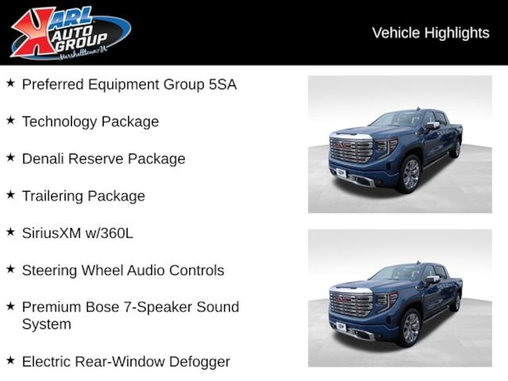 Recent Arrival! Certified. CARFAX One-Owner. Clean CARFAX. Downpour Metallic 2024 GMC Sierra 1500 4D Crew Cab Denali EcoTec3 5.3L V8 15/19 City/Highway MPG 10-Speed Automatic 4WD, Jet Black Leather, 120-Volt Bed Mounted Power Outlet, 120-Volt Interior Power Outlet, 170 Amp Alternator, 2 Charge/Data USB Ports Inside Center Console, 2 Type-C Charge-Only Rear USB Ports, 2 USB Ports, Auto-Locking Rear Differential, Auxiliary External Transmission Oil Cooler, Bed View Camera, Chrome Header w/Signature Denali Chrome Grille, Chrome Recovery Hooks, Chrome Wheel To Wheel Assist Steps, Color-Keyed Carpeting Floor Covering, Deep-Tinted Glass, Denali Reserve Package, Electric Rear-Window Defogger, Floor-Mounted Center Console, Front Rain-Sensing Wipers, GMC Connected Access Capable, GMC MultiPro Power Steps, HD Surround Vision, Heated 2nd Row Outboard Seats, Heated Driver & Front Outboard Passenger Seating, Heavy-Duty Air Filter, Hill Descent Control, Hitch Guidance, Hitch View, In-Vehicle Trailering System App, Integrated Trailer Brake Controller, Keyless Open & Start, LED Cargo Area Lighting, Multicolor 15" Diagonal Head-Up Display, OnStar & GMC Connected Services Capable, Perimeter Lighting, Power Door Locks, Power Front Passenger Windows w/Express Up/Down, Power Front Windows w/Driver Express Up/Down, Power Rake & Telescoping Steering Column, Power Rear Windows w/Express Down, Power Sliding Rear Window w/Rear Defogger, Power Sunroof, Preferred Equipment Group 5SA, Premium Bose 7-Speaker Sound System, Push Button Start, Rear Camera Mirror, Rear Cross Traffic Braking, Rear Pedestrian Detection, Rear Wheelhouse Liners, Remote Vehicle Starter System, SiriusXM w/360L, Spray-On Pickup Bedliner w/Denali Logo, Steering Wheel Audio Controls, Technology Package, Theft Deterrent System (Unauthorized Entry), Trailer Camera Provisions, Trailer Side Blind Zone Alert, Trailering Package, Ultrasonic Front & Rear Park Assist, Universal Home Remote, Ventilated Driver & Front Passenger Seats, Wheel Locks (Set of 4) (LPO), Wheels: 22" x 9" Painted Aluminum, Wi-Fi Hotspot Capable, Wireless Charging.