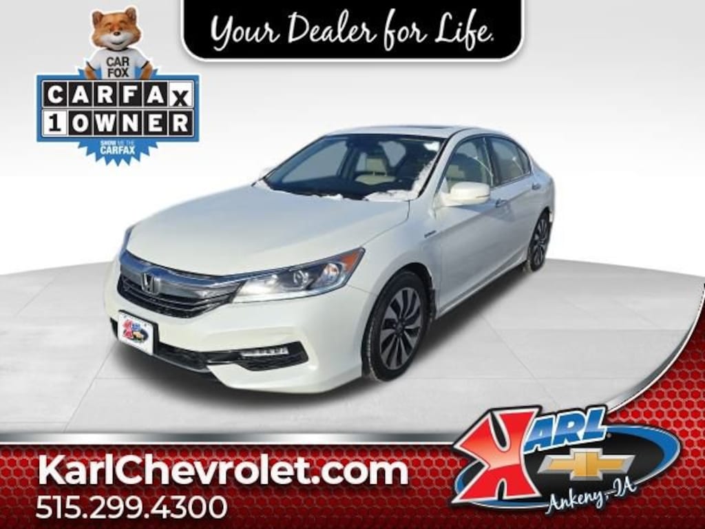 Recent Arrival! CARFAX One-Owner. Clean CARFAX. White 2017 Honda Accord Hybrid EX-L 2.0L 4-Cylinder DOHC 16V i-VTEC 2.0L 4-Cylinder DOHC 16V i-VTEC. 49/47 City/Highway MPG eCVT FWDAt Karl Chevrolet we want to help you find the best new or used car in Ankeny that suits your needs. Check out the 2017 Honda Accord Hybrid For Sale in Ankeny, IA. When you buy a new car at Karl Chevrolet you know you're finding a vehicle you can rely on. We have a great selection of Platinum Quality Pre-Owned Vehicles. We also pride ourselves in creating a friendly atmosphere and reliable new car dealership that you can trust. Call us with any questions about our 2017 Honda Accord Hybrid and our experts will be glad to help you! (515) 299-4300. *Equipment and options are generated by a 3rd party vendor, exact vehicle options may vary. Please see a salesperson for complete details and vehicle information.