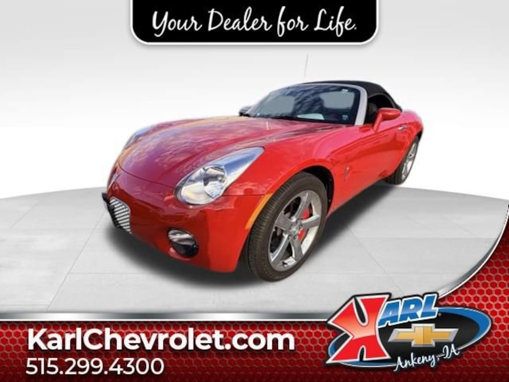 Recent Arrival! Certified. Local Trade! Aggressive (Victo 2007 Pontiac Solstice Base 2DR CONVERTIBLE ECOTEC 2.4L I4 SFI DOHC VVT 3-Spoke Leather-Wrapped Steering Wheel, 6 Speakers, Alloy wheels, AM/FM Stereo w/CD Player/Seek & Scan, Convenience Package, Driver 2-Way Power Height Adjustment, Driver Information Center, Electronic Cruise Control w/Set & Resume Speed, Front Halogen Fog Lamps, Leather Seating Surfaces, Power Door Locks, Power driver seat, Power Windows, Power-Adjustable Body-Color Outside Mirrors, Preferred Package, Premium Package, Remote Keyless Entry, Single-Zone Manual Air Conditioning, Speed-Sensitive Wipers, Steering Wheel Accessory Controls, XM Satellite Radio. 5-Speed RWDAt Karl Chevrolet we want to help you find the best new or used car in Ankeny that suits your needs. Check out the 2007 Pontiac Solstice For Sale in Ankeny, IA. When you buy a new car at Karl Chevrolet you know you're finding a vehicle you can rely on. We have a great selection of Platinum Quality Pre-Owned Vehicles. We also pride ourselves in creating a friendly atmosphere and reliable new car dealership that you can trust. Call us with any questions about our 2007 Pontiac Solstice and our experts will be glad to help you! (515) 299-4300. *Equipment and options are generated by a 3rd party vendor, exact vehicle options may vary. Please see a salesperson for complete details and vehicle information.Certification Program Details: Karl Chevrolet of Ankeny, your newest CarBravo dealer, where platinum quality vehicles and unmatched benefits come together! -Comprehensive Limited Bumper to Bumper Warranty. -24/7 Roadside Assistance: -Multi-Point Vehicle Inspection: Every vehicle undergoes a Platinum Quality Certified Inspection known throughout the industry to ensure top quality. -Vehicle Exchange Program. Within 10-Days and 500 miles -Complimentary Vehicle History Report -Nationwide Dealer Network Support: Enjoy the backing of the extensive CarBravo and GM dealership network. -OnStar and SiriusXM Trials: Enjoy connected services and entertainment with included trial subscriptions. -Terms and conditions may apply. With every vehicle purchased, you'll enjoy the peace of mind that comes with a limited warranty, 24/7 roadside assistance, and a comprehensive vehicle inspection.
