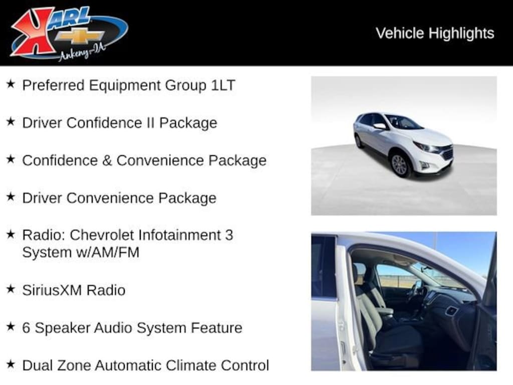 At Karl Chevrolet, we want to help you find the best new or used car in Ankeny that suits your needs. When you buy a new car at Karl Chevrolet you know you're finding a vehicle you can rely on. We have a great selection of Platinum Quality Pre-Owned Vehicles. We also pride ourselves in creating a friendly atmosphere and a reliable Dealership that you can trust. Call us and our experts will be glad to help you! (515) 299-4300. *Equipment and options are generated by a 3rd party vendor, exact vehicle options may vary. Please see a salesperson for complete details and vehicle information.