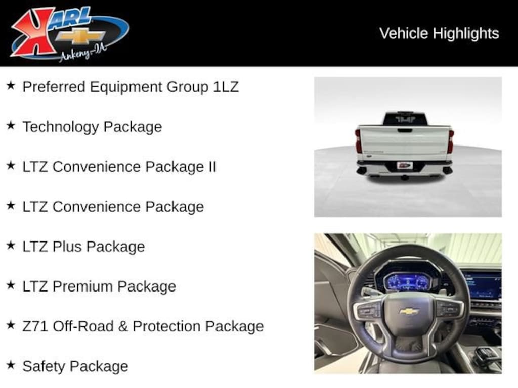 Don't miss your chance to experience the power, capability, and premium features of this 2024 Chevrolet Silverado 1500 LTZ 4WD CREW CAB 147 LTZ. Visit Karl Chevrolet of Ankeny today and let our team of experts help you find the perfect vehicle to meet your needs.